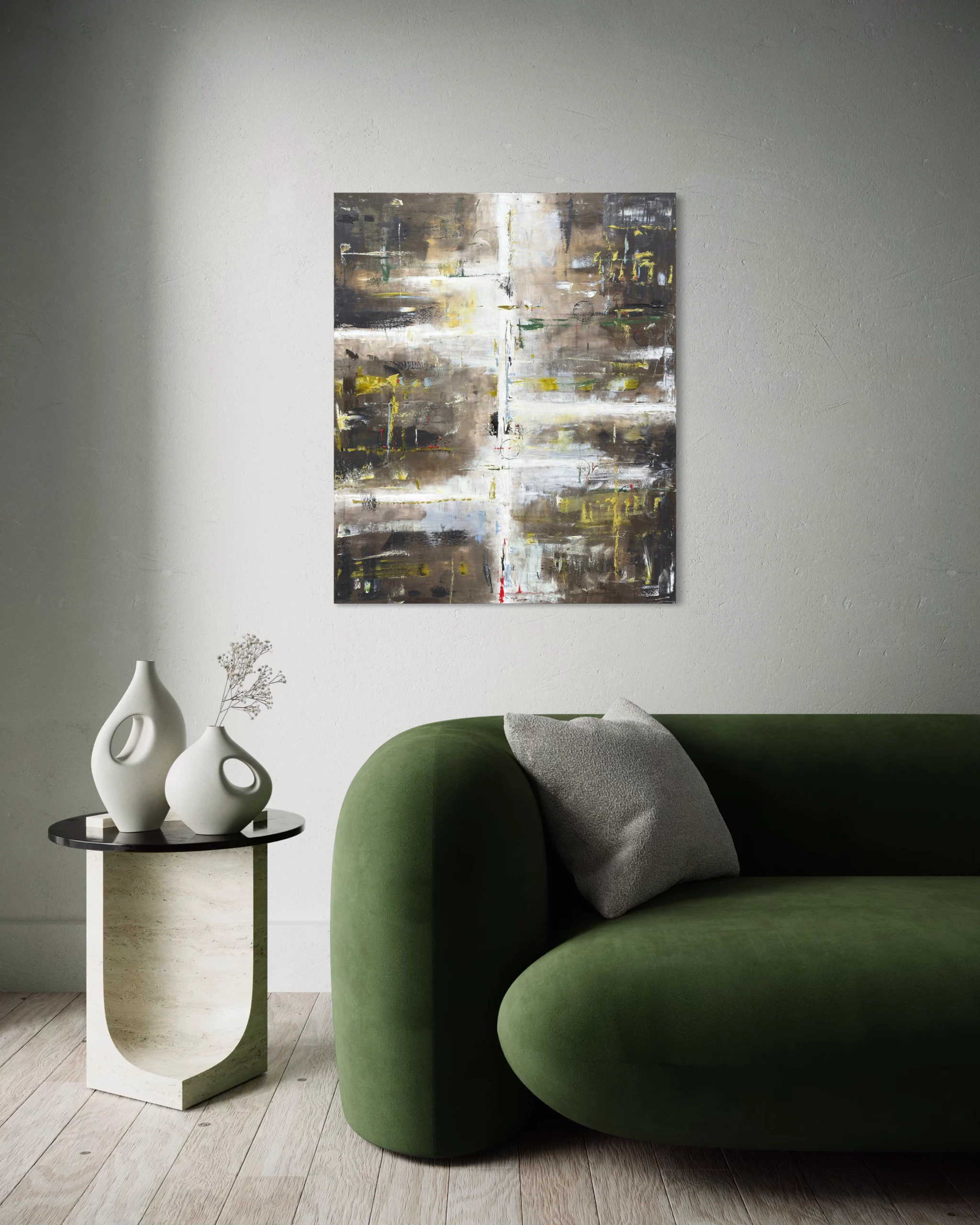Inspiracją do tej niepowtarzalnej kompozycji było przedwiośnie na polu. Topniejący śnieg, mokra ziemia, pojawiająca się młoda trawa budzące się do życia.
